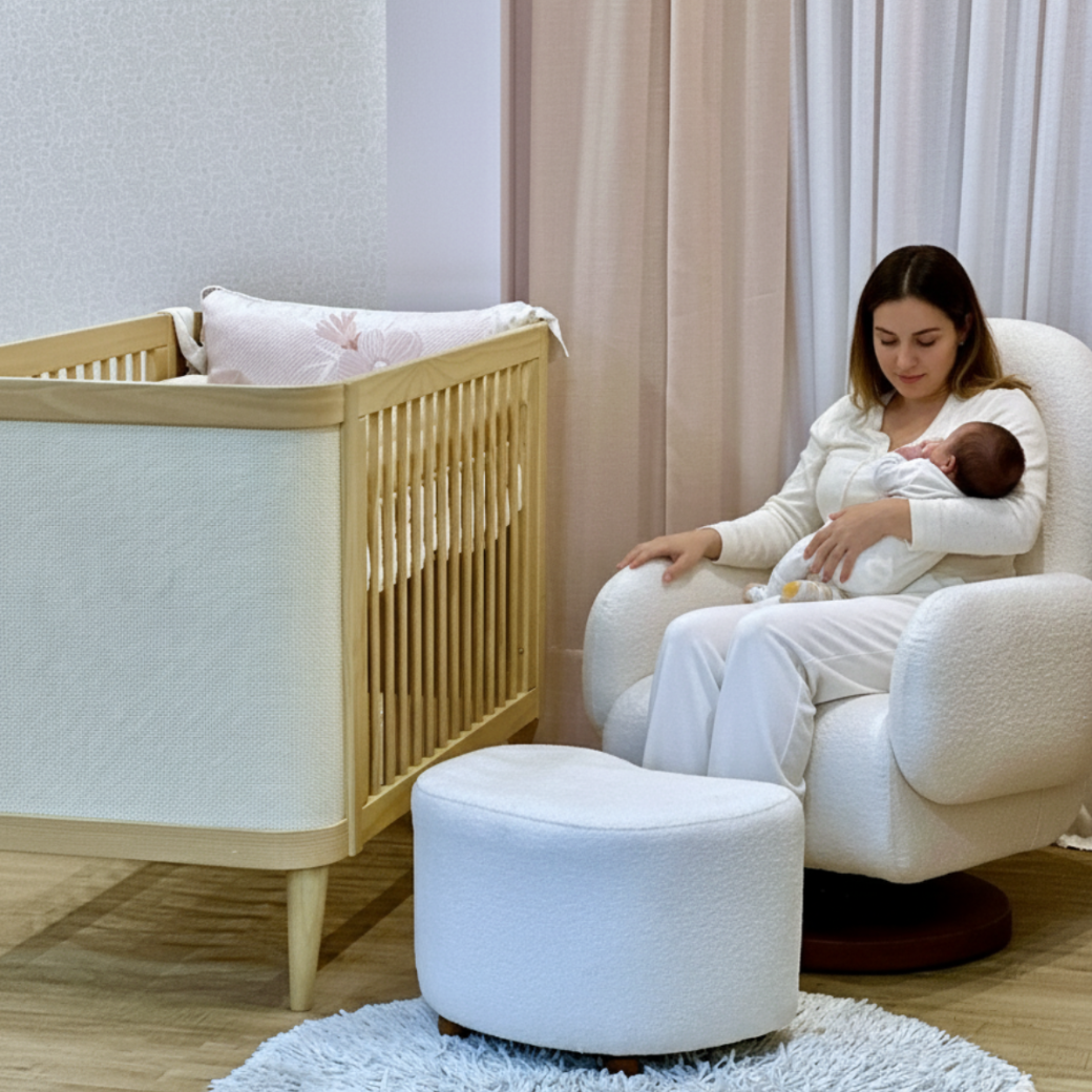A poltrona de amamentação é um dos móveis mais usados do quarto do bebê. Ela precisa oferecer ergonomia, estabilidade e conforto, acompanhando não apenas a fase da amamentação, mas também outros momentos de cuidado e afeto.