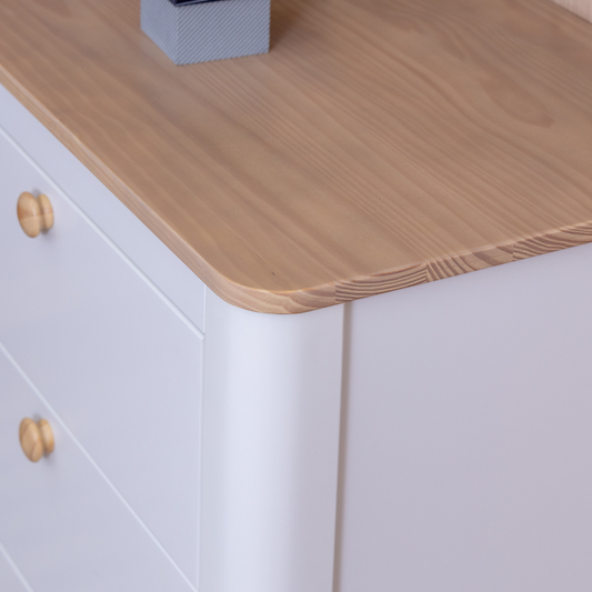 O ideal é guardar itens pesados, como cobertores e cueiros em cestos ou armários. No entanto, se você tiver que armazená-los na cômoda, use a gaveta de baixo.