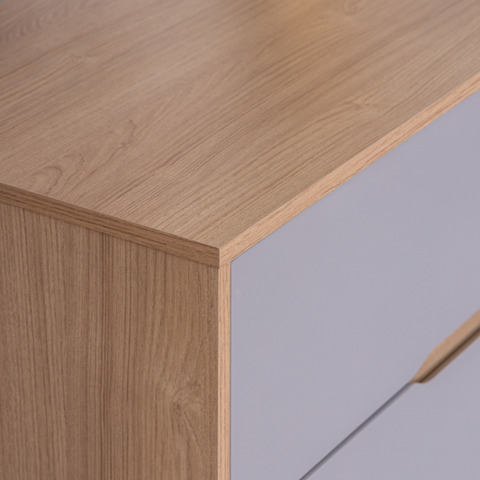 Enquanto a gaveta de cima é para guardar fraldas essenciais, as do meio são ótimas para roupas do dia a dia do bebê, como pijamas, macacões, etc.