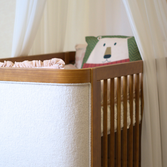 Berço de Madeira Estofado com Tecido Bouclé 2 em 1 Linha Soley