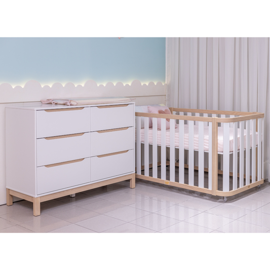 Berço Evolutivo e Cômoda Grande 6 Gavetas Branco com Carvalho MalvaPreço normal R$ 8.601,30Preço normal-