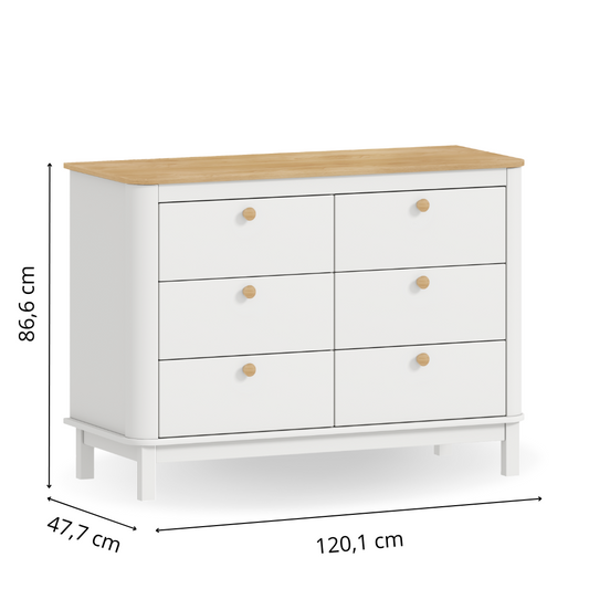 Berço 3 em 1 Loop + Cômoda Cozy 6 Gavetas | Branco com Carvalho Malva