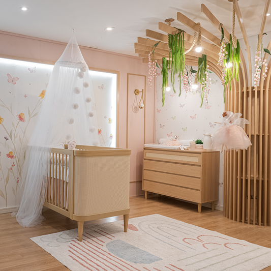 Nossos berços 2 em 1 têm tamanho padrão americano. Após o uso como berço, transformam-se em uma charmosa mini cama infantil — as barras de conversão já acompanham o produto, dispensando a compra separada. Fabricados em MDF e madeira Pinus de reflorestamento.