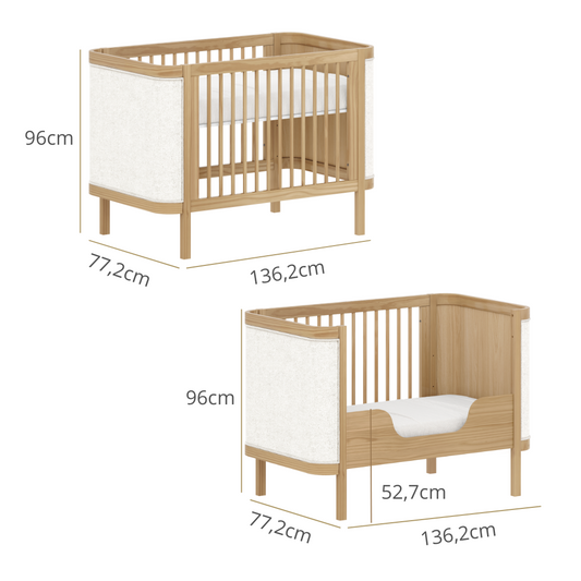 Berço de Madeira Maciça Soley 2 em 1 com Bouclé | Carvalho Malva