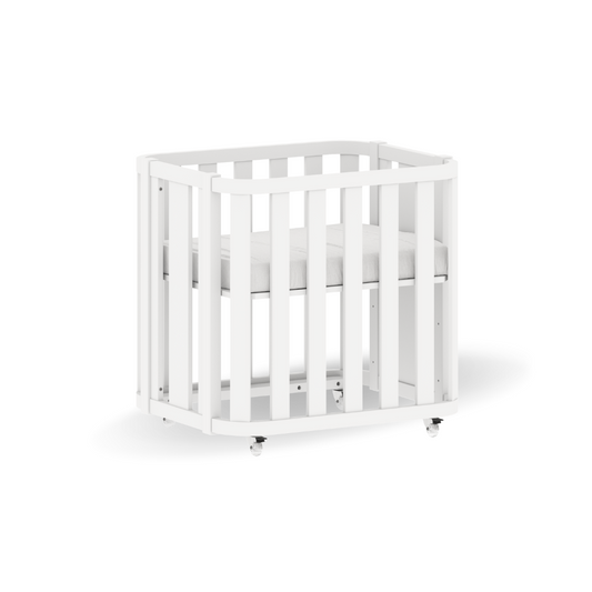 Mini Berço com Colchão e Rodízios Loop Branco com Madeira
