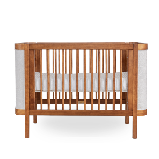 Berço de Madeira Maciça com Bouclé Soley 2 em 1 | Nogueira