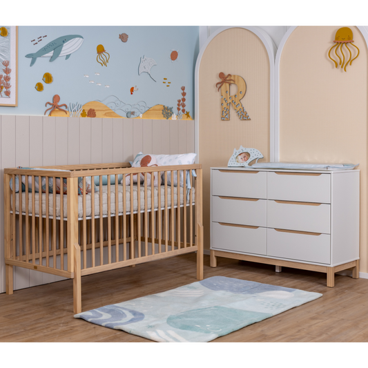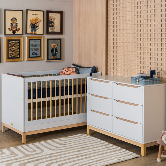 Berço vira Cama em Madeira Bold e Cômoda 6 Gavetas Linha Cozy