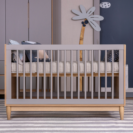 Kit Berço e Cômoda Tomi – MDF Cinza com Carvalho Malva, 6 Gavetas
