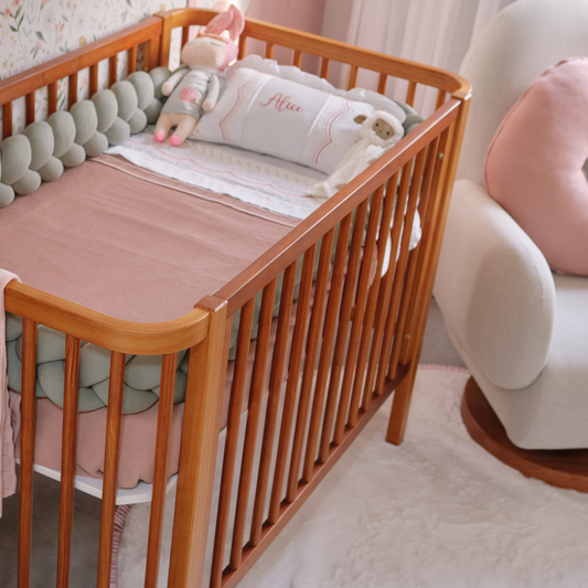 Nossos berços 2 em 1 têm tamanho padrão americano. Após o uso como berço, transformam-se em uma charmosa mini cama infantil — as barras de conversão já acompanham o produto, dispensando a compra separada. Fabricados em MDF e madeira Pinus de reflorestamento.