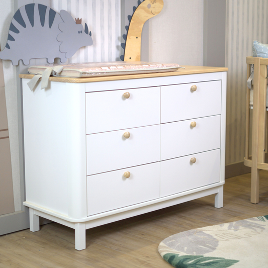 Cômoda 6 gavetas Branco com Carvalho Malva | Linha Softy
