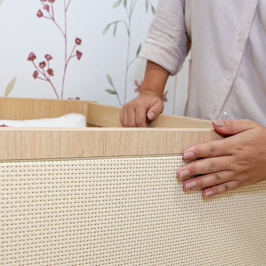 Cômoda 90cm com 4 Gavetas e palinha linha Indy | Carvalho Malva