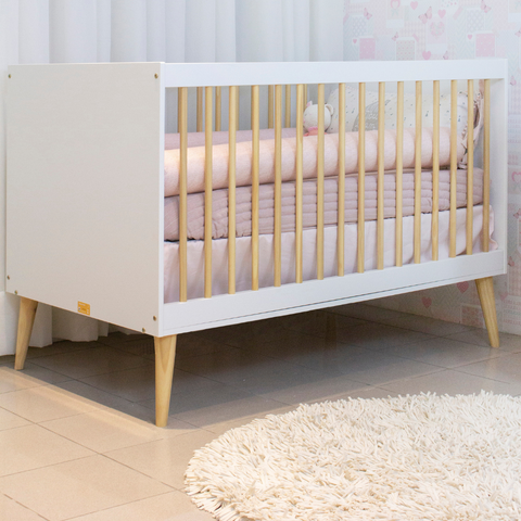 Berço Americano de Bebê 2 em 1 Linha Retrô Branco com Carvalho