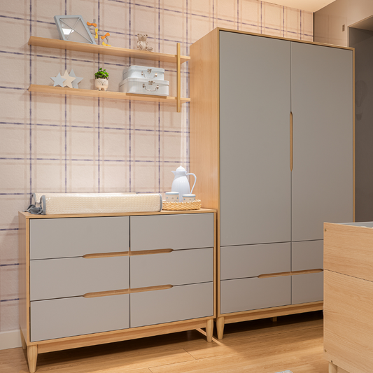 Guarda Roupa para Quarto Infantil Cinza com Carvalho Malva Linha Tomi