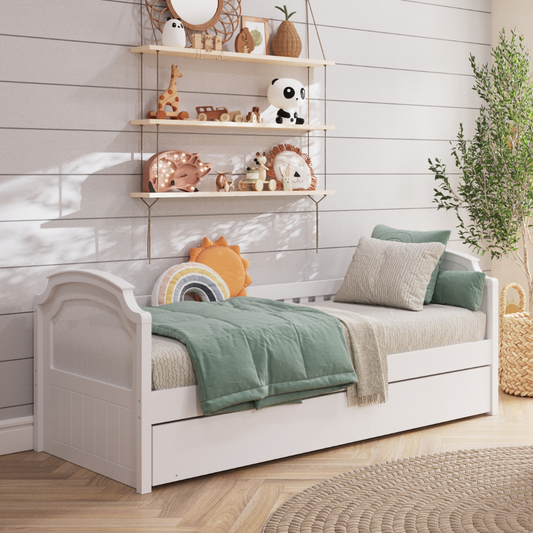 Nossos berços 2 em 1 têm tamanho padrão americano. Após o uso como berço, transformam-se em uma charmosa mini cama infantil — as barras de conversão já acompanham o produto, dispensando a compra separada. Fabricados em MDF e madeira Pinus de reflorestamento.