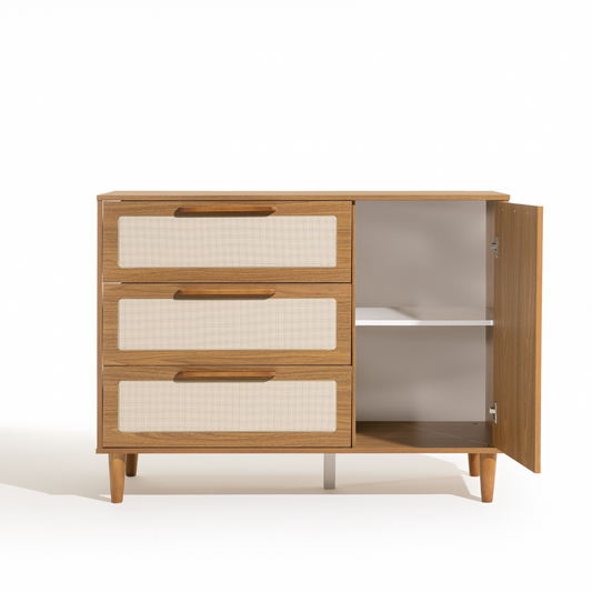 Cômoda 4 gavetas Linha Paglia Nogueira com Palhinha Natural
