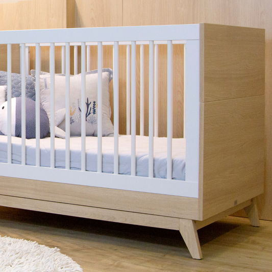 Berço Americano 2 em 1 Loop | Branco com Carvalho Malva