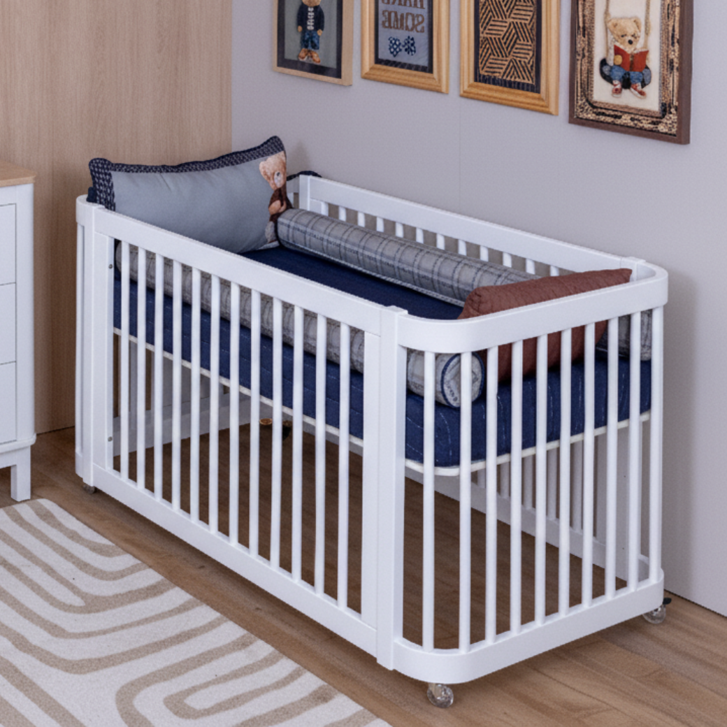 Berço 3 em 1 Evolutivo Linha Loop Branco com Madeira