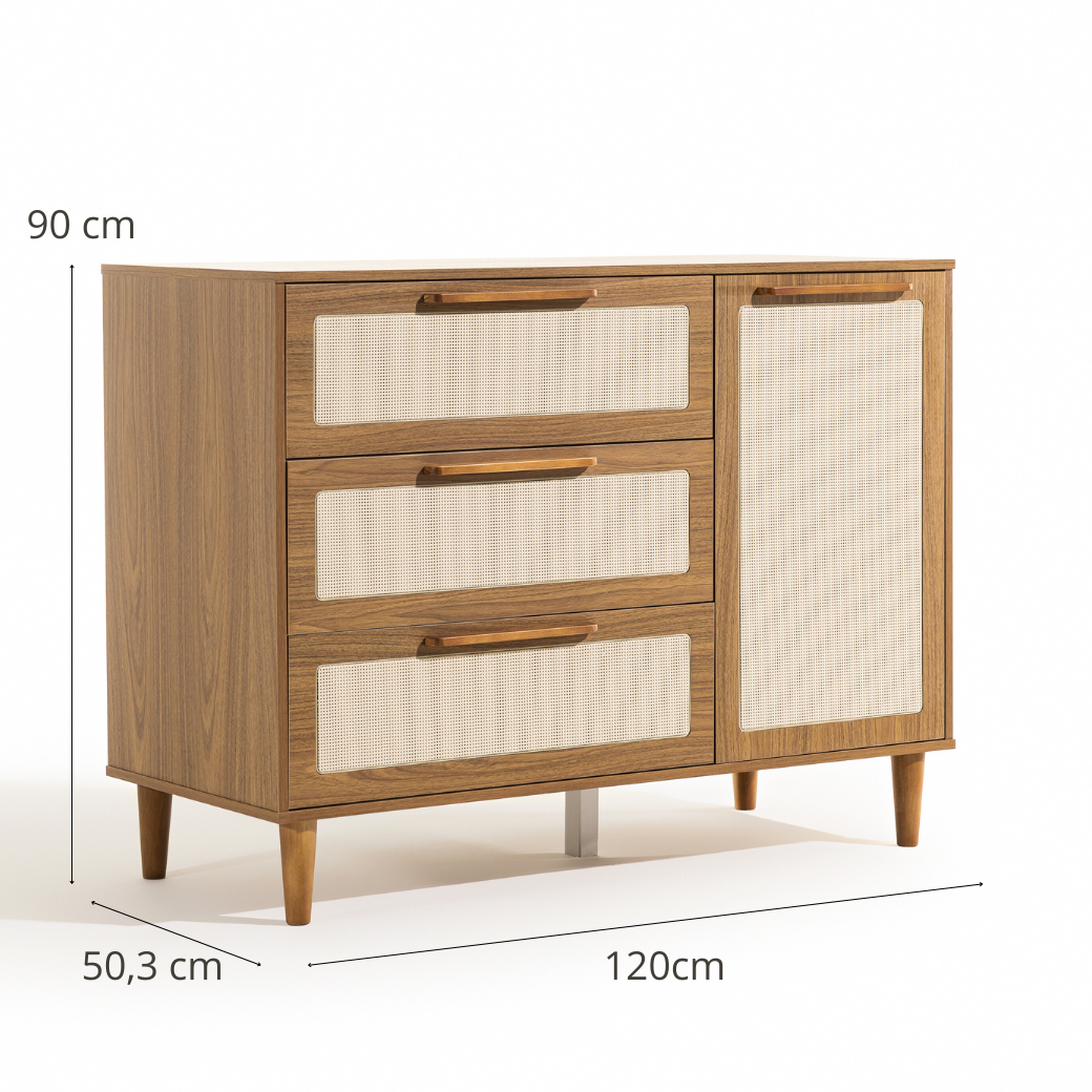 Cômoda Paglia com Palhinha e 4 Gavetas | Carvalho Malva