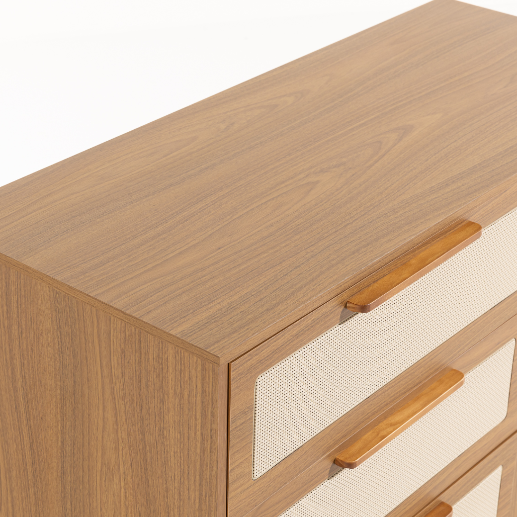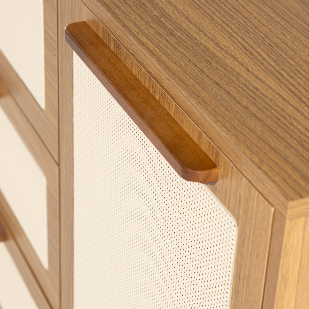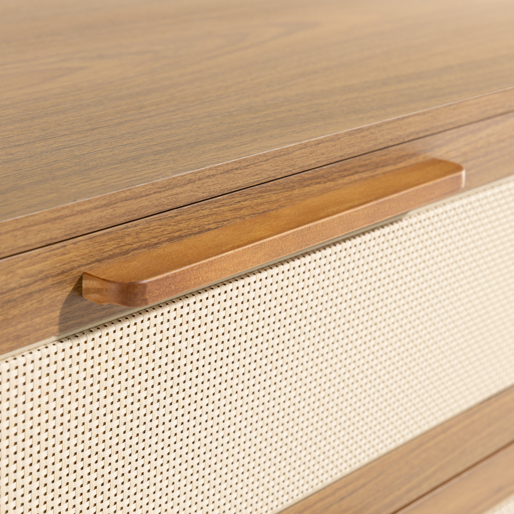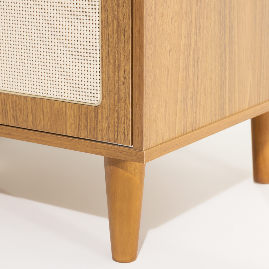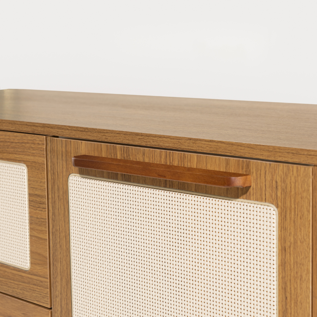 • Tela em Rattan nas gavetas e porta.